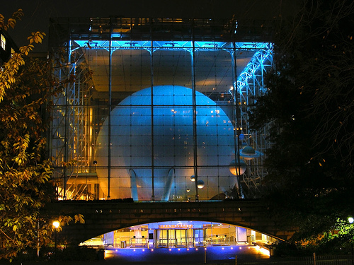 They got off at the American Museum of Natural History subway stop only to find the facade of the museum covered for construction. It had begun to rain, so Betty hurried Ryan around the corner toward Cafe Lalo, but to Betty's confusion, Ryan insisted they walk through the small park adjacent to the Museum and sat in front of the Rose Center for Earth & Science.